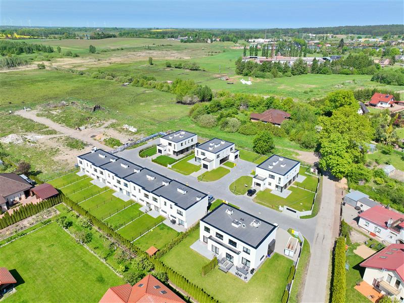 Całe osiedle obejmować będzie docelowo 40 budynków, dojazd do osiedla drogą asfaltową na osiedlu droga wewnętrzna wyłożona polbrukiem.