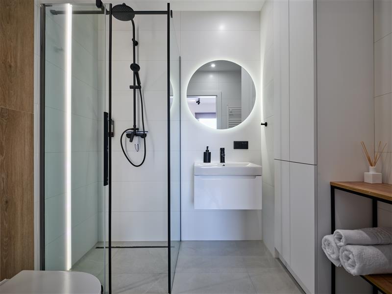 - Łazienka: Stylowa łazienka z prysznicem, która zapewni Ci komfort i relaks.