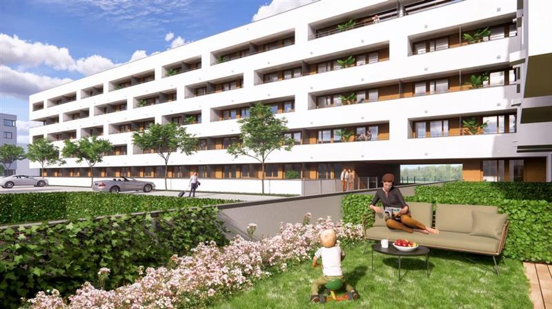 - W ramach inwestycji powstaje sześć 4-piętrowych budynków wielorodzinnych wyposażonych w podziemne hale garażowe, windy oraz komórki lokatorskie.
