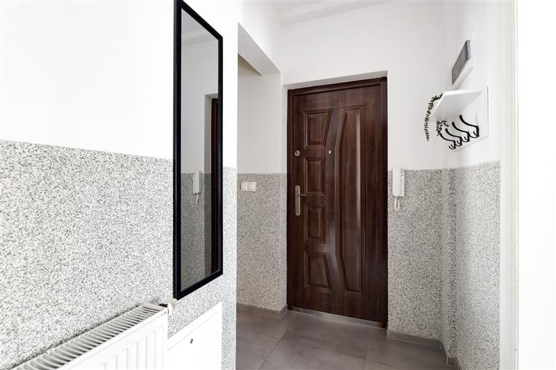 Lokal mieszkalny po remoncie w neutralnych kolorach. Duża, ładna klatka schodowa w trakcie remontu.