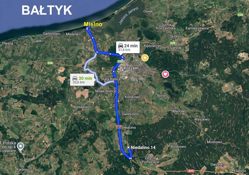 - Mielno: 25 km
