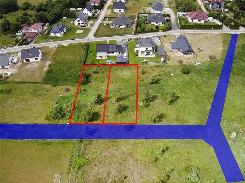 Współrzędne GPS (do mapy Google, mniej więcej środek działki): 54.177342, 16.102780
