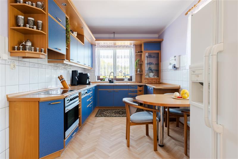 * Ogrzewanie: piec gazowy (Junkers 2024), piec na różne opały w kotłowni, kominek w salonie