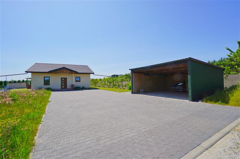 Przedmiotem sprzedaży jest parterowy dom jednorodzinny, wolnostojący sprzedawany w stanie deweloperskim o powierzchni całkowitej 83,40 m2, posadowiony na przestronnej i w pełni zagospodarowanej działce o powierzchni 1500 m2. Dodatkowym atutem nieruchomości jest murowana piwnica na terenie działki, wiata garażowa oraz oczko wodne.
