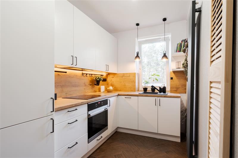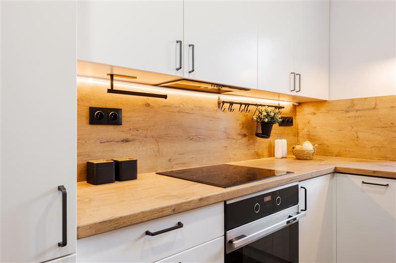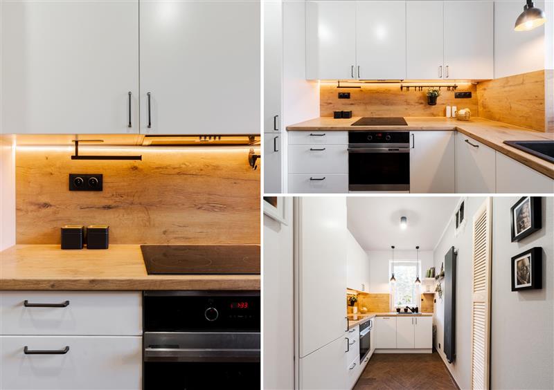 - Kuchnia z nowoczesnym wyposażeniem (lodówka, piekarnik, płyta indukcyjna, okap podszafkowy, zmywarka).