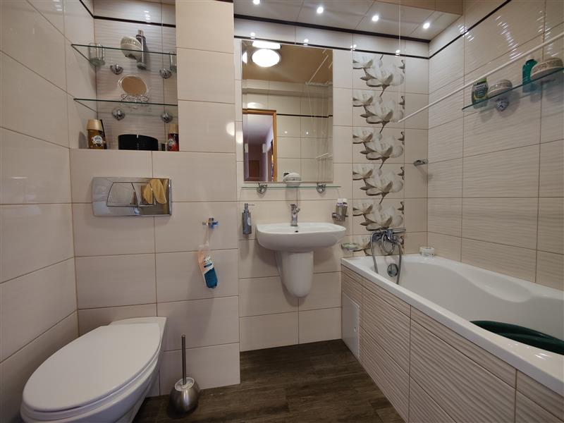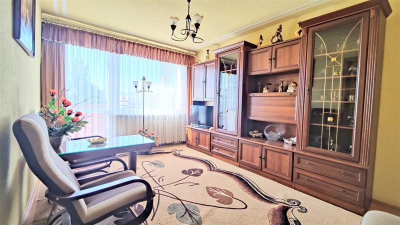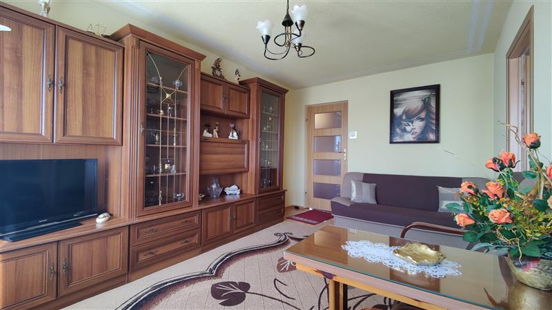 Schludne mieszkanie 3 pokojowe na osiedlu z pełną infrastrukturą. Z przedpokoju mamy wejście do salonu, kuchni , łazienki oraz do sypialni. Z salonu przechodzimy do drugiej sypialni oraz na balkon, który jest po zachodniej stronie budynku. Dzięki temu do późnego wieczora mamy słońce w salonie. Kilka lat temu mieszkanie przeszło gruntowny remont. Na ścianach tapety natryskowe. W kuchni i łazience kafelki, w pokojach panele.