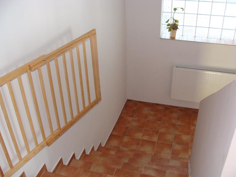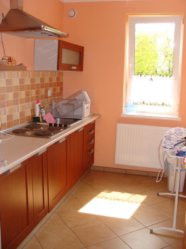 PARTER : 7 pokoi z łazienkami + wspólna kuchnia z płytą elektryczną. Łazienki z kabiną prysznicową oraz WC. Na podłodze terakota, ściany wyłożone glazurą, kotłownia z piecem gazowym dwufunkcyjnym, duży garaż na dwa samochody.
