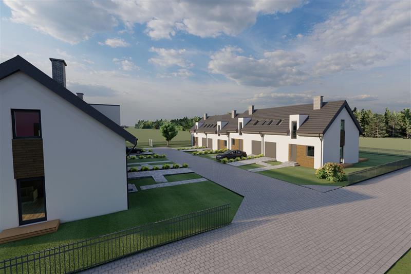 Teren działki będzie zagospodarowany, od frontu podjazd i chodnik.