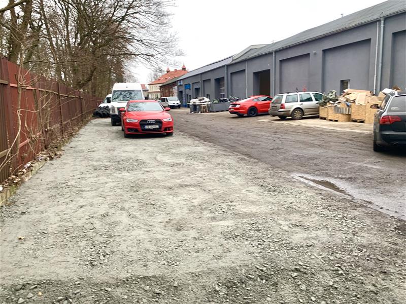 Dostęp do hali drogą asfaltową. Udział w działce o pow. 6.981m2 stanowiącej pełną własność na której stoi budynek. Plac manewrowy, możliwość podjazdu dla TIR-a. Dla przedmiotowej hali przynależy plac na ok 9 samochodów osobowych.