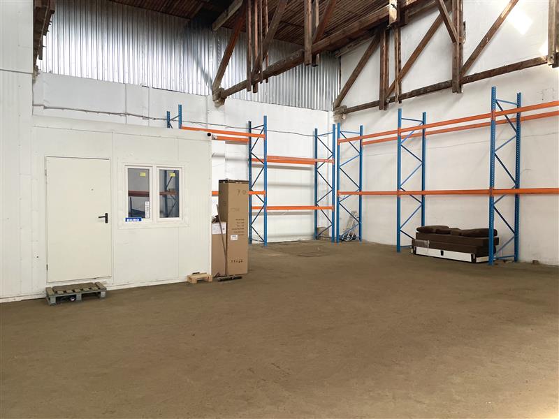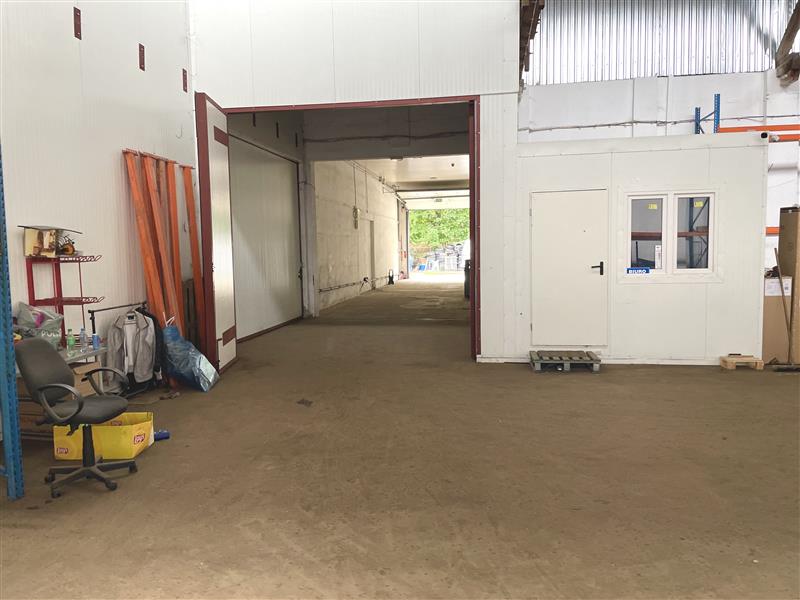 Druga cześć hali ma pow. 200m2 składa się z części magazynowej, pomieszczenia socjalnego i wspólnej toalety. Wysokość ok 6m do drewnianych konstrukcji. Wjazd z poziomu 0 przez wspólną bramę. Dostęp do rampy. Posadzka cementowa w dobrym stanie.