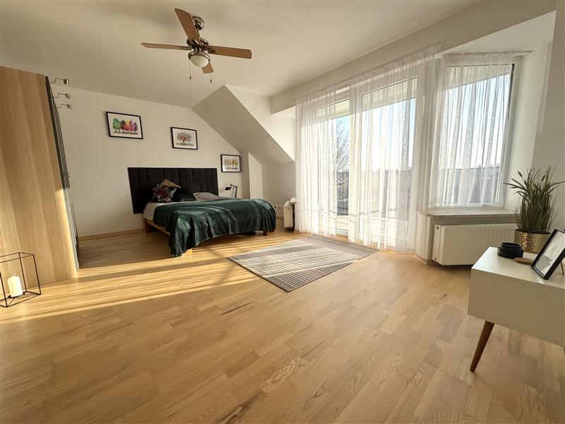PIęTRO: Składa się z czterech sypialni w tym jedna z garderobą i łazienką, pomieszczenia pełniącego funkcję siłowni z sauną, przestronnej łazienki oraz holu gdzie znajdziemy aneks kuchenny. Hol wyłożony pięknym litym drewnem oferuje dodatkową przestrzeń do spotkań, a aneks kuchenny ułatwia serwowanie tam pysznych dań.
