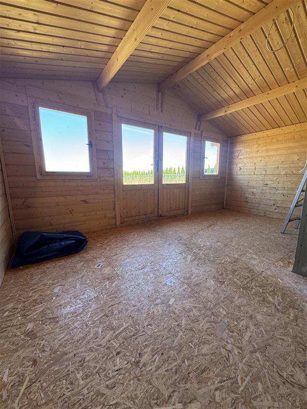 Specyfikacja domku letniskowego: wymiary: 4,80x4m; powierzchnia 19,2m2; pokrycie dachu: deski + papa + listewki; wykonany jest z wysokiej jakości drewna.