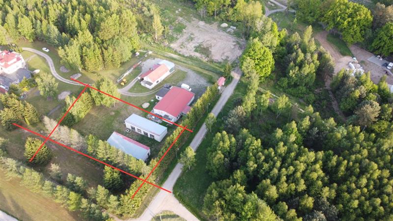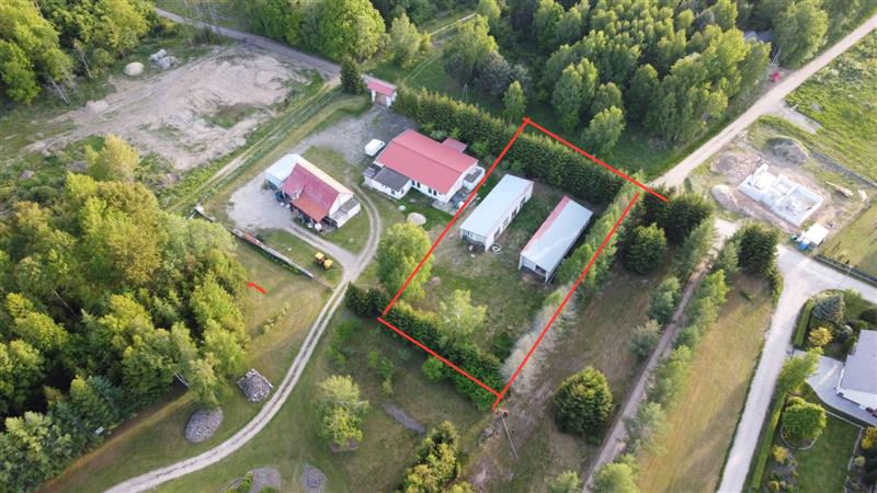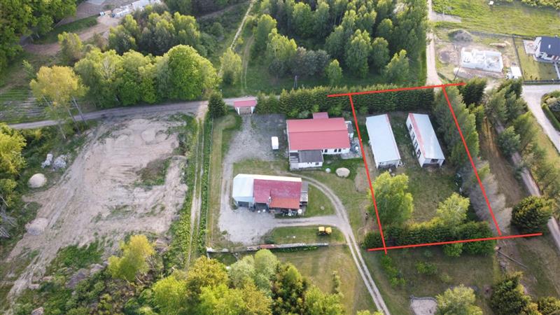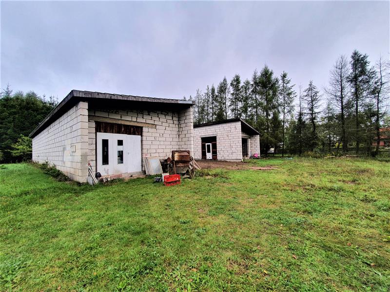 Działka o pow. 1.677m2 zabudowana dwoma budynkami o pow. 128,6m2 każdy z nich. Łączna powierzchnia to 257,2m2. Aktualnie budynki są w stanie surowym otwartym. Wybudowane z suporeksu, dach blachodachówka, ławy fundamentowe betonowe. Przy obecnym stanie budowy można swobodnie dokonywać aranżacji wnętrza oraz zestawień poszczególnych segmentów na działce w zależności od potrzeb inwestora. Istnieje możliwość zmiany użytkowania budynku na budynek mieszkalny jednorodzinny.