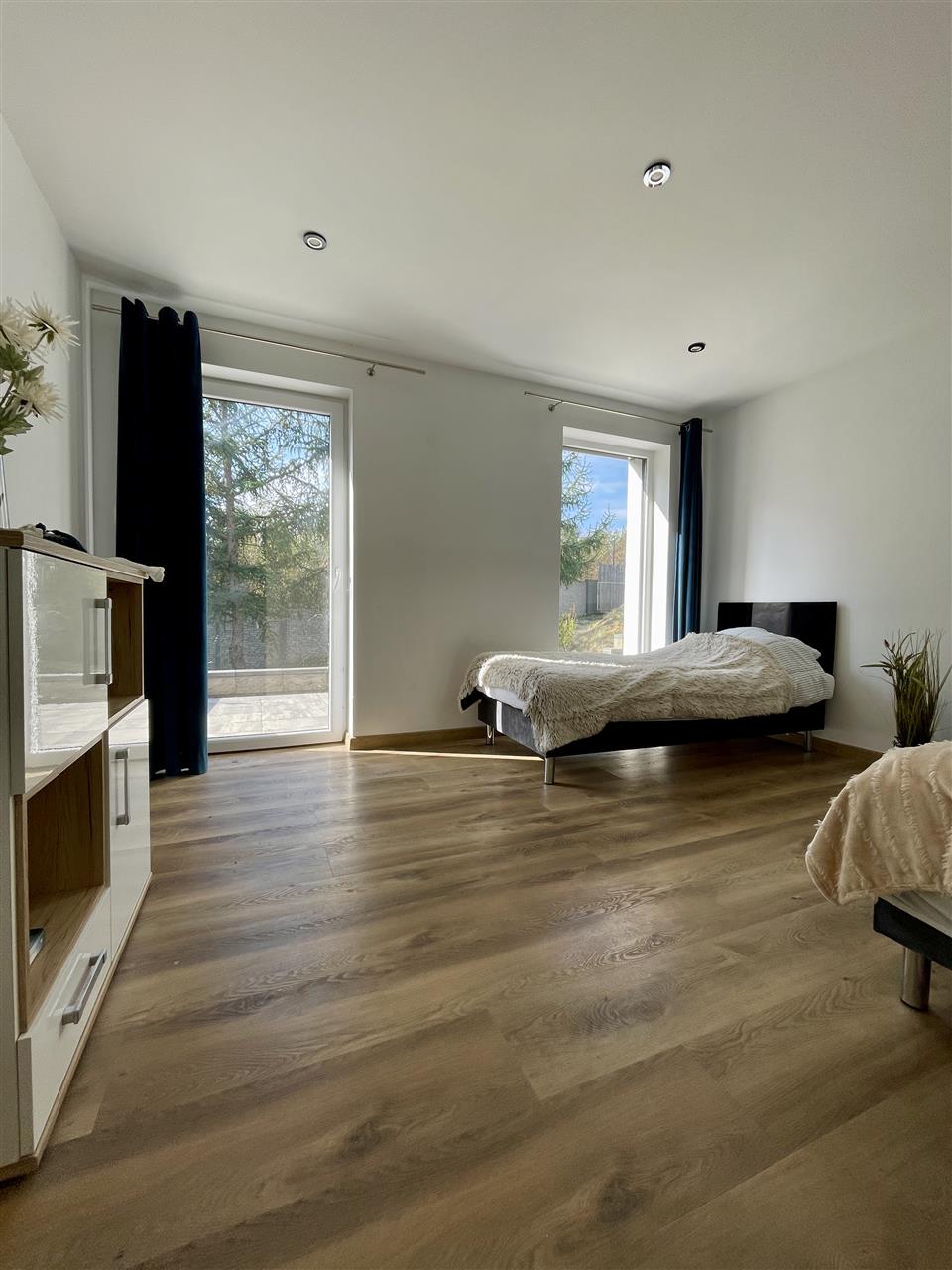 Standard: budynek wybudowany z Suporexu, częściowo z drewna. Ocieplenie styropian 25cm, dach: blacho-dachówka. Ogrzewanie indukcyjne, maty elektryczne firmy Dream Heat. Ciepła woda z datownika ciepłej wody (500l). Okna PCV trzyszybowe z roletami zewnętrznymi. Instalacja alarmowa oraz monitoring - kamery (Hikvision) na posesji.