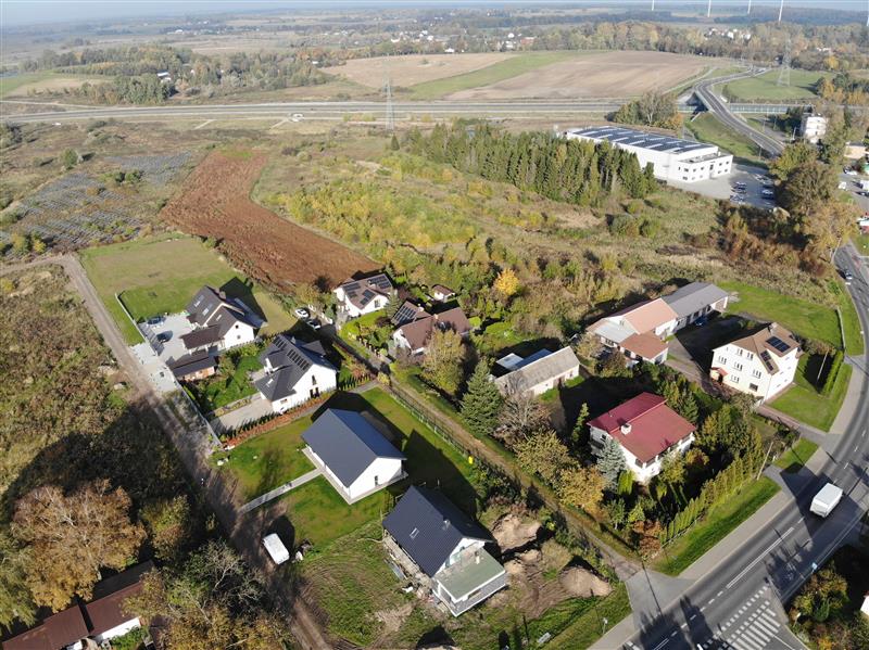 Prąd, woda, gaz i kanalizacja znajdują się w drodze z płyt jumbo – na wysokości ostatniego domu, około 70 metrów od granicy działki.