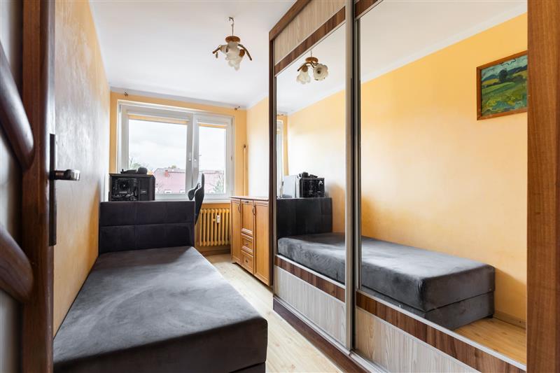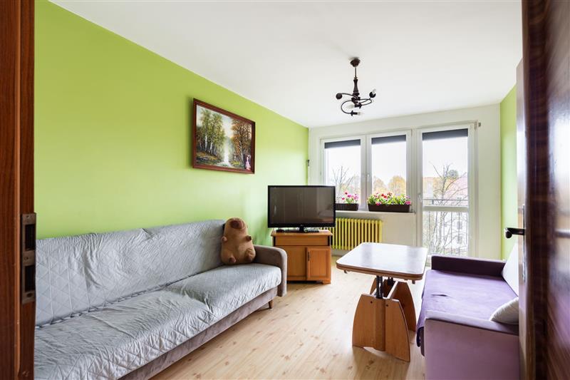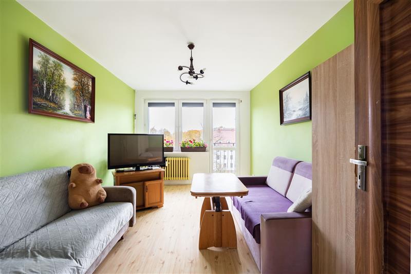 Wnętrze jest ciepłe, dobrze doświetlone i bardzo przytulne. Układ pomieszczeń sprawia, że mieszkanie idealnie sprawdzi się zarówno dla rodziny, jak i dla pary szukającej wygodnej przestrzeni z dodatkowym pokojem do pracy.