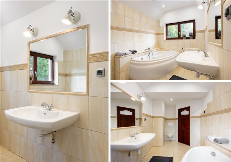 Wnętrze domu zostało funkcjonalnie zaprojektowane. Oferuje dwie łazienki, pomieszczenie gospodarcze, piwnicę oraz