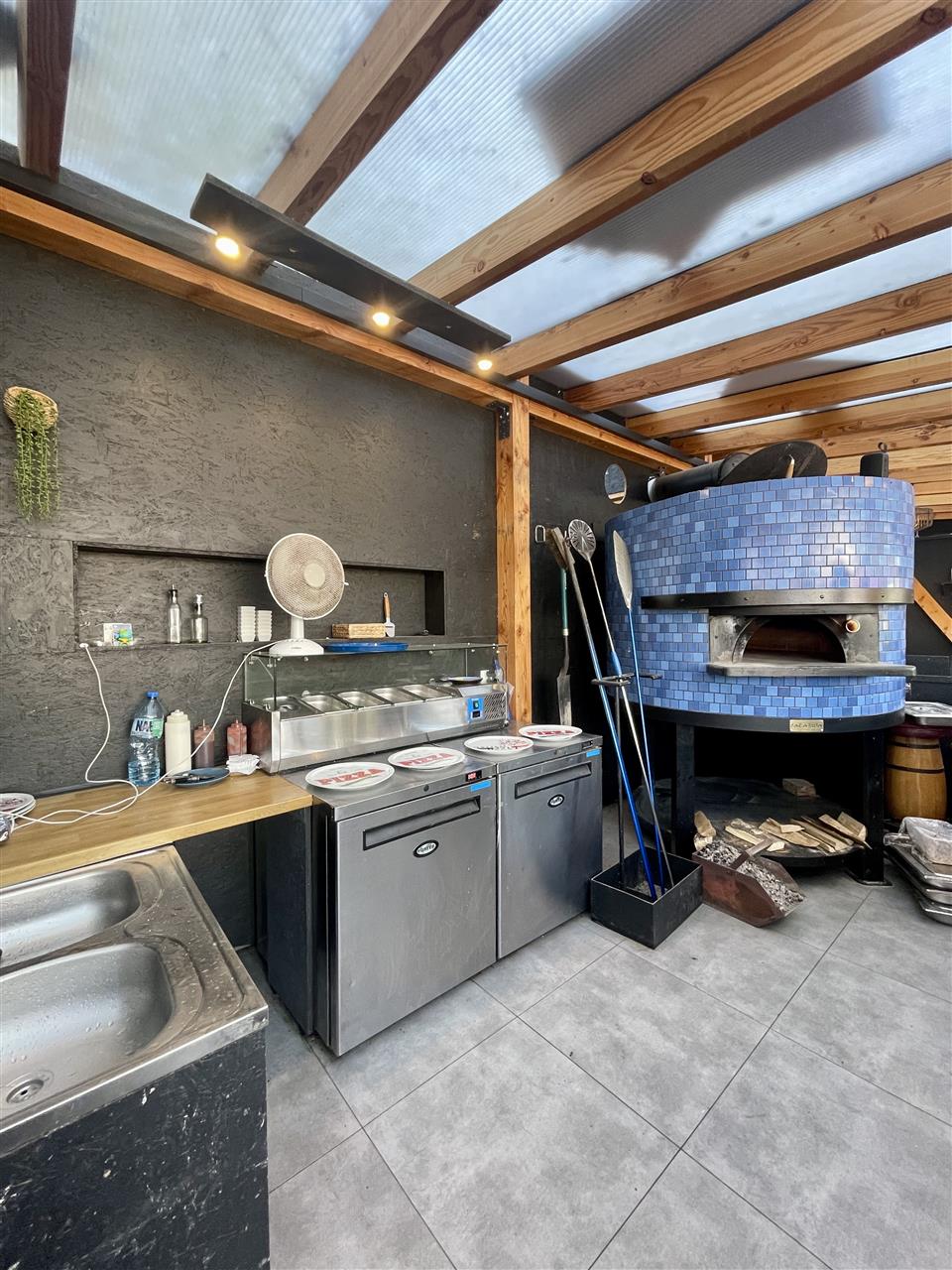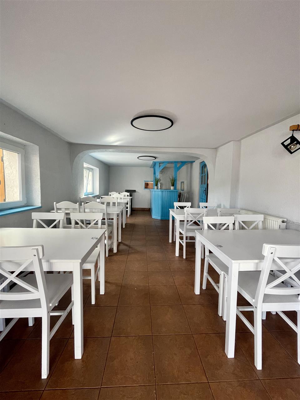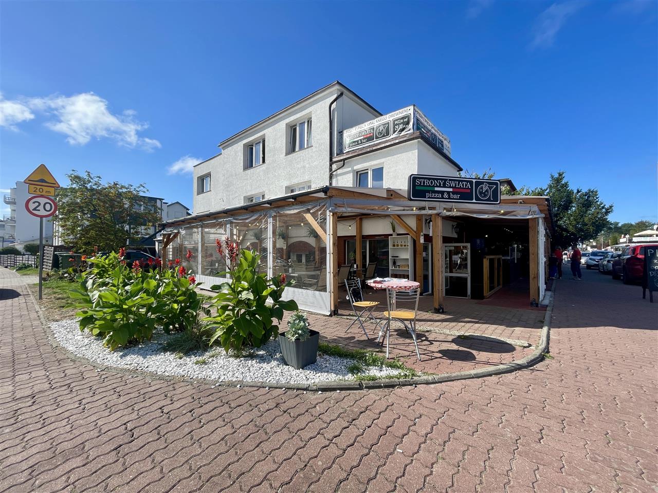 Parter zajmuje w pełni wyposażony lokal gastronomiczny z letnim ogrodem wyposażonym w dużą ilość stolików oraz z kompletnym zapleczem socjalnym. Od lat funkcjonuje tu popularna i dobrze prosperująca pizzeria, co stanowi doskonały fundament dla kontynuacji działalności lub jej rozwinięcia.