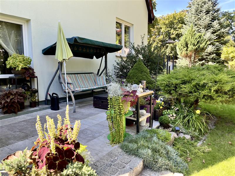 Otoczenie domu to prawdziwy atut tej nieruchomości. Przepiękny, dojrzały ogród z licznymi nasadzeniami i miejscami do relaksu: