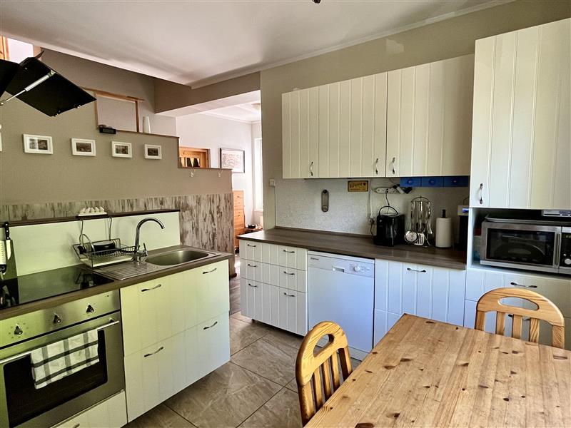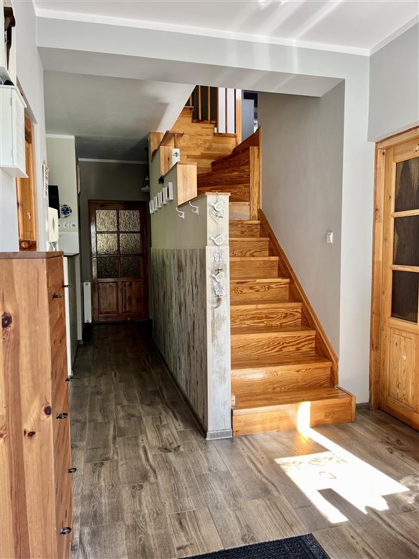 Część piwniczna domu znajduje się pod starą częścią budynku, z bezpośrednim wyjściem na ogród – idealna na pracownię, spiżarnię lub dodatkowe pomieszczenia gospodarcze.