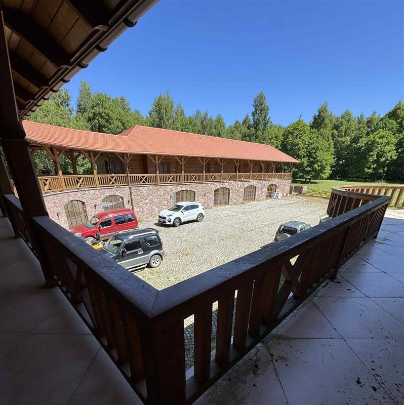 To osobne skrzydło połączone gankiem z częścią główną – zawiera 9 komfortowych pokoi z łazienkami, idealnych na agroturystykę, butikowy pensjonat lub przestrzeń dla gości.