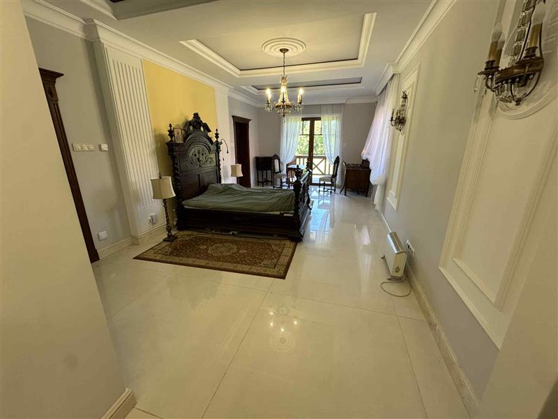 Parter: przestronny salon, elegancki gabinet, ogromna sypialnia z prywatną łazienką i dwiema garderobami – oddzielnymi dla niej i dla niego.