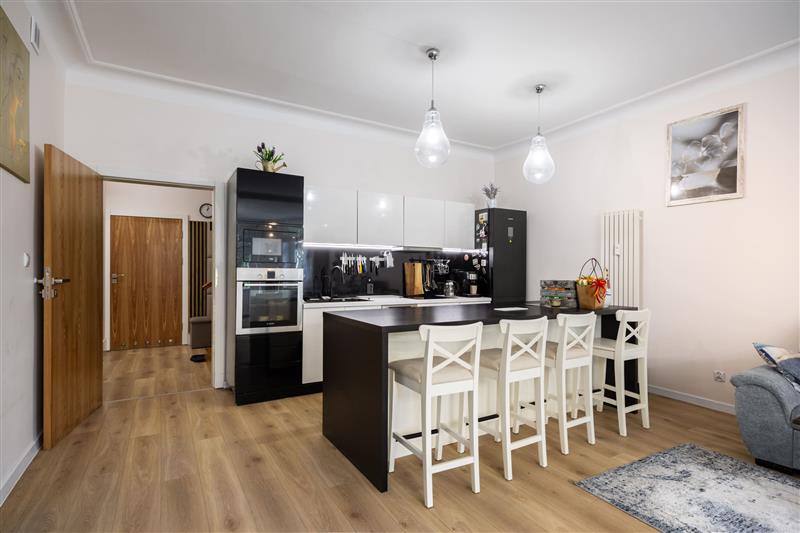 oraz pełen zestaw nowoczesnego sprzętu AGD, który pozostaje w cenie nieruchomości. W przedpokoju znajduje się