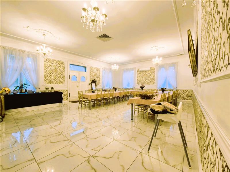 Powierzchnia sali weselnej, która stanowi odrębny budynek mieszczący się vis a vis budynku pałacowego to 1 000 m2, budynek dwukondygnacyjny z pokojami dla gości na piętrze ( 6 pokoi z łazienkami ). Pokoje po remoncie, gotowe do prowadzenia działalności hotelowej.