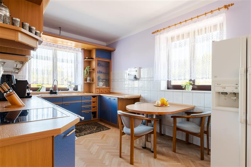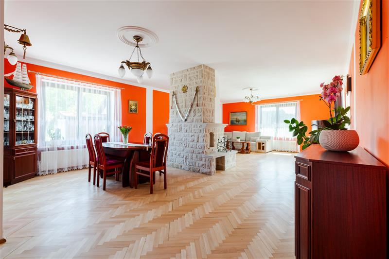 • ogrzewanie: piec gazowy Junkers (2024), dodatkowo piec na paliwo stałe w kotłowni oraz kominek w salonie