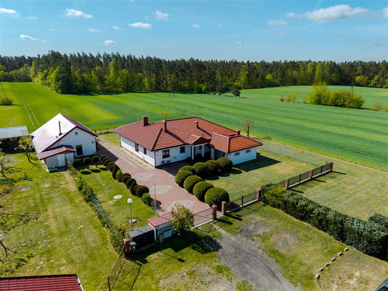 Na jednej działce znajdują się dwa budynki mieszkalne: komfortowy dom gotowy do zamieszkania oraz drugi budynek w stanie surowym zamkniętym do własnej aranżacji (np. pod wynajem, dom gościnny lub pracownię).