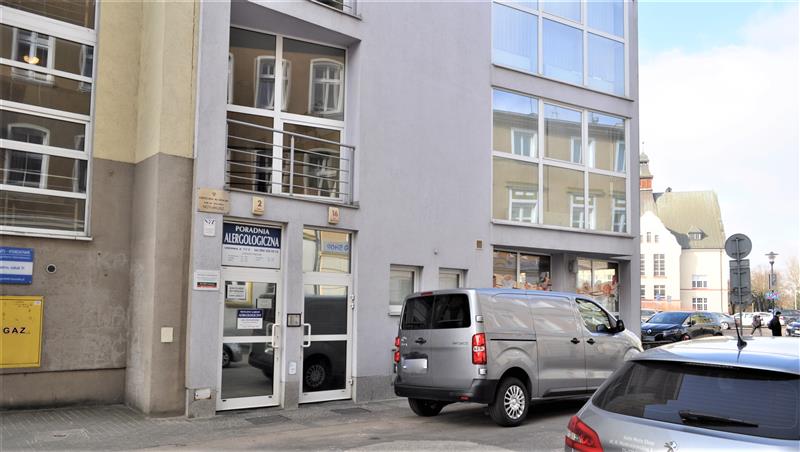 Wejście do lokalu od ulicy H. Modrzejewskiej. W budynku domofon, przestronna, czysta klatka schodowa. Lokal mieści się na 1 piętrze w budynku 3 kondygnacyjnym, w sąsiedztwie kancelarii notarialnej, gabinetów, cukierni i innych usług. Świetne miejsce na prowadzenie firmy, niskie koszty utrzymania lokalu. Brak opłat do wspólnoty. Przy Placu Gwiaździstym znajduje się jeden z większych parkingów w centrum miasta.