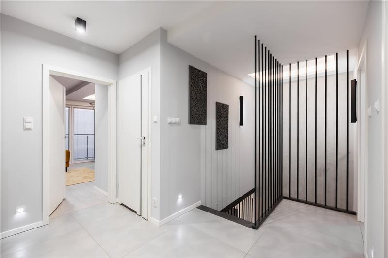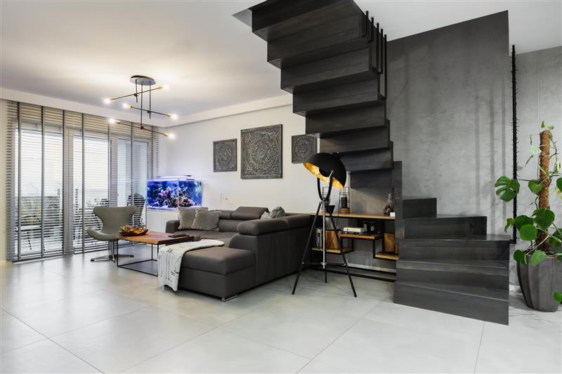 zabudową aluminiową, schody drewniane w kolorze szaro-antracytowej, wnętrze zostało