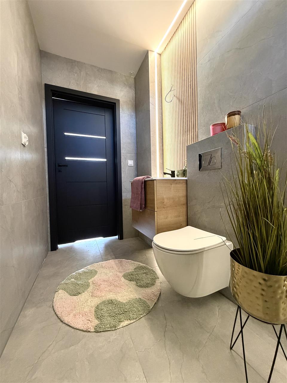 Dom zaprojektowano z myślą o nowoczesnym stylu życia – zachwyca już z zewnątrz swoją futurystyczną bryłą i olbrzymimi przeszkleniami, które doskonale doświetlają wnętrze i nadają mu lekkości. To idealna propozycja dla osób ceniących design, przestrzeń i funkcjonalność.