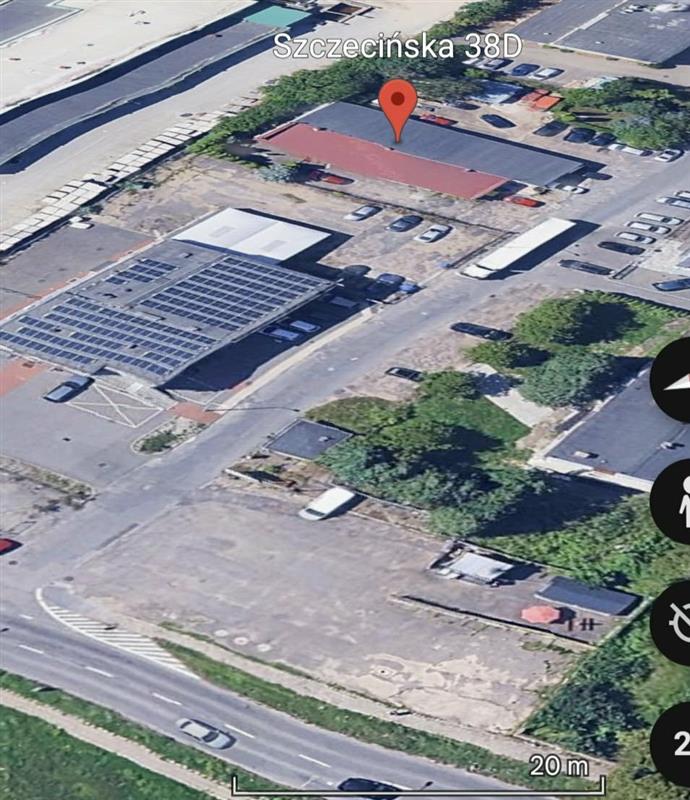 Na jednej z działek stoi budynek, druga działka pusta – można na niej postawić na przykład halę namiotową.